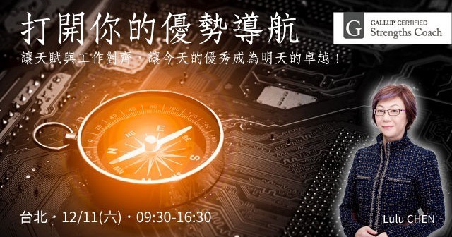 12/11【職涯競爭力講堂:打開你的蓋洛普優勢導航】讓天賦與工作對齊,讓今天的優秀成為明天的卓越!(台北5班)